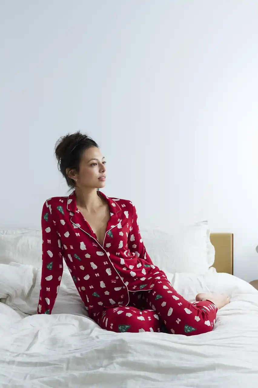 ポラークリスマスプリント モダール オープンフロント パジャマ |