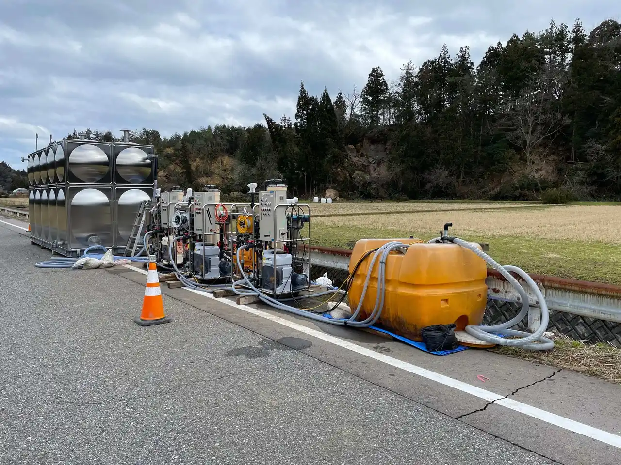 災害時にはグループ会社と協力し、迅速に造水装置を現地へ配備して給水活動をサポートしています。2024年には、より迅速な支援活動を実施するため社内体制を強化し「EWAT(イーワット)」という専門組織を設立しました。これにより、災害対応の専門スタッフの育成や組織化を進め、自治体がより支援要請を出しやすい体制を整えています。 |