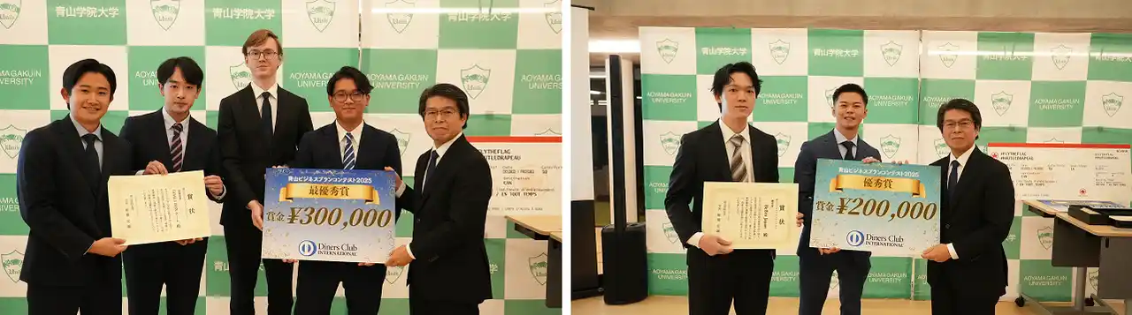 ダイナースクラブカードを発行する三井住友トラストクラブ株式会社(代表取締役社長:五十嵐 幸司、以下当社)は、2025年12月に日本での創業65周年を迎えたことを記念し、これからの時代を担う若い世代へ向けた施策を複数開催しています。その一環としてこのたび、次世代を担う若い起業家精神の育成と社会課題解決への取り組みを支援するべく、青山学院大学が主催する「青山ビジネスプランコンテスト2025」に特別協賛し、2025年11月29日(土)に開催された最終審査会において、応募総数56組の中から最優秀賞、優秀賞を受賞したチームに対し賞金を贈呈しました。 |