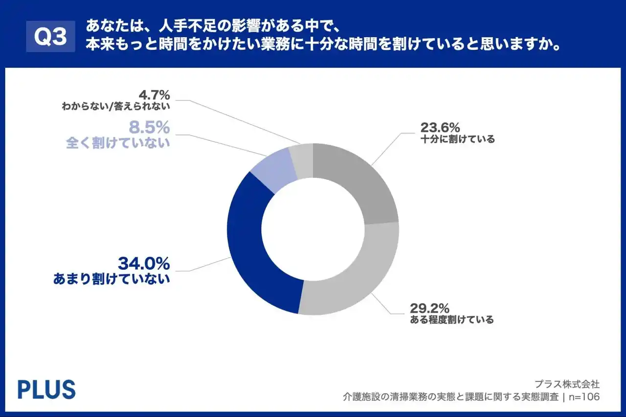 「Q3. あなたは、人手不足の影響がある中で、本来もっと時間をかけたい業務(入居者とのコミュニケーションやケア等)に十分な時間を割けていると思いますか。」