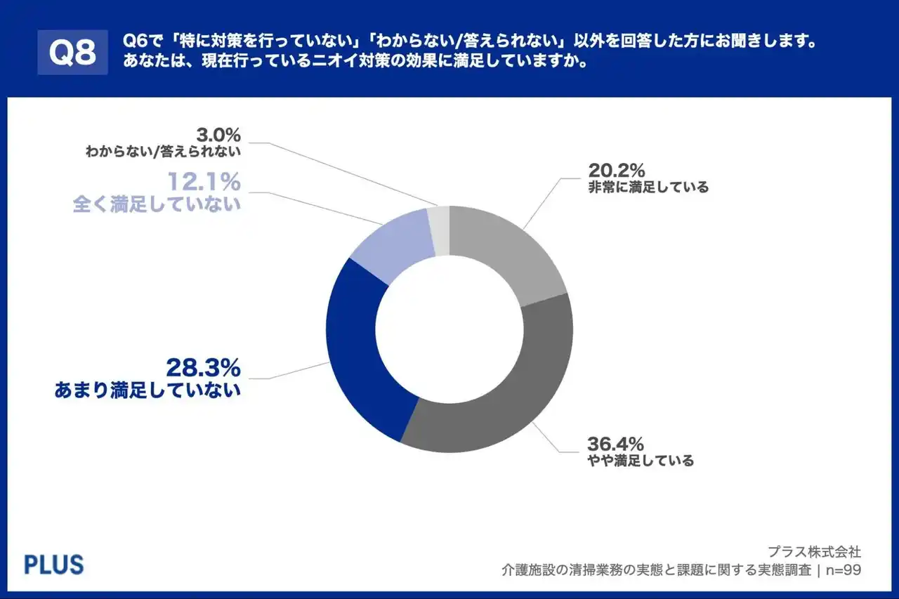 「Q8. Q6で「特に対策を行っていない」「わからない/答えられない」以外を回答した方にお聞きします。あなたは、現在行っているニオイ対策の効果に満足していますか。」