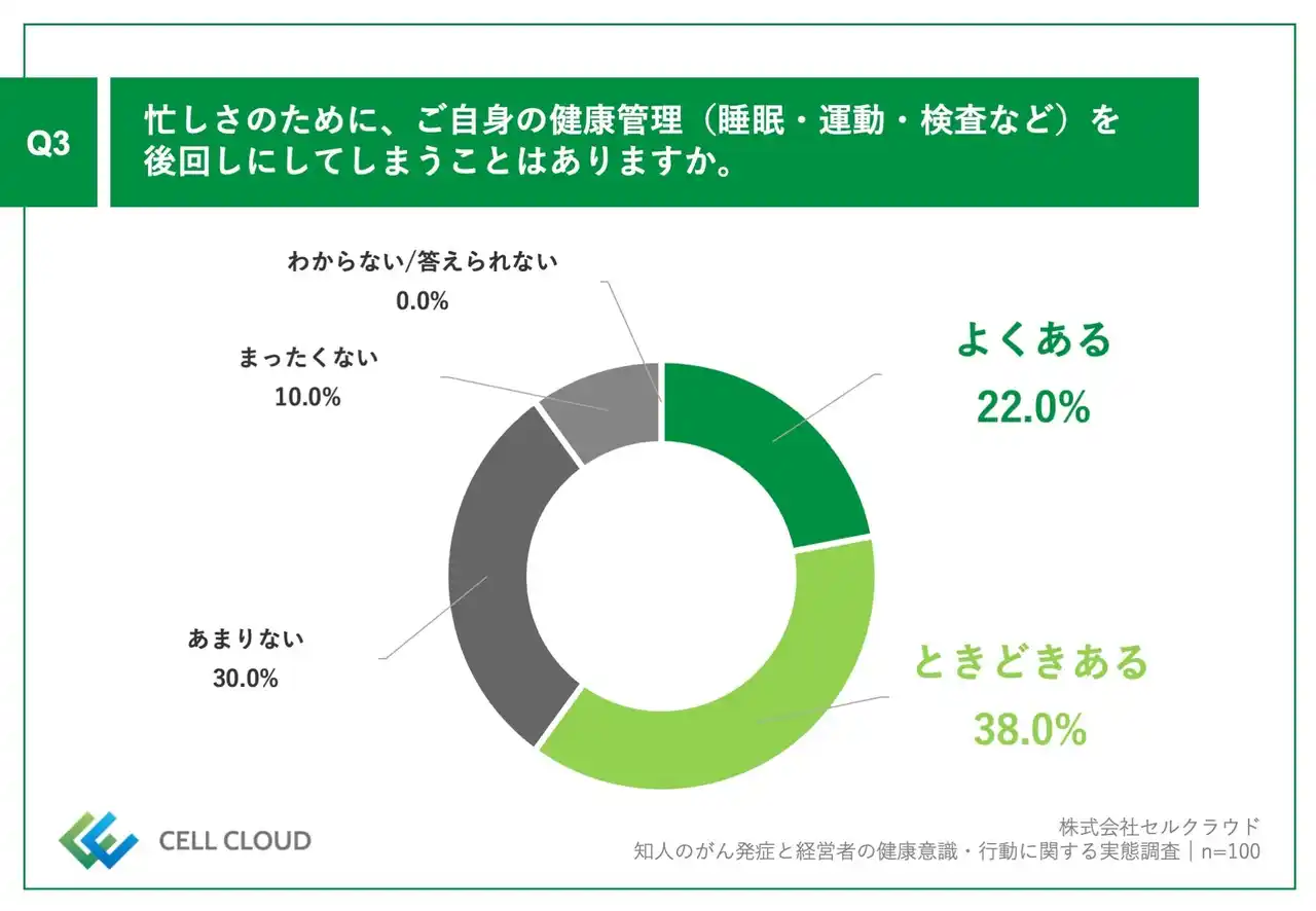 Q3.忙しさのために、ご自身の健康管理(睡眠・運動・検査など)を後回しにしてしまうことはありますか。 |