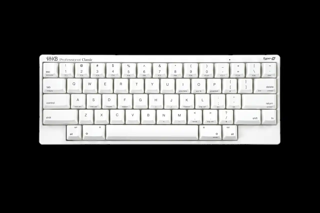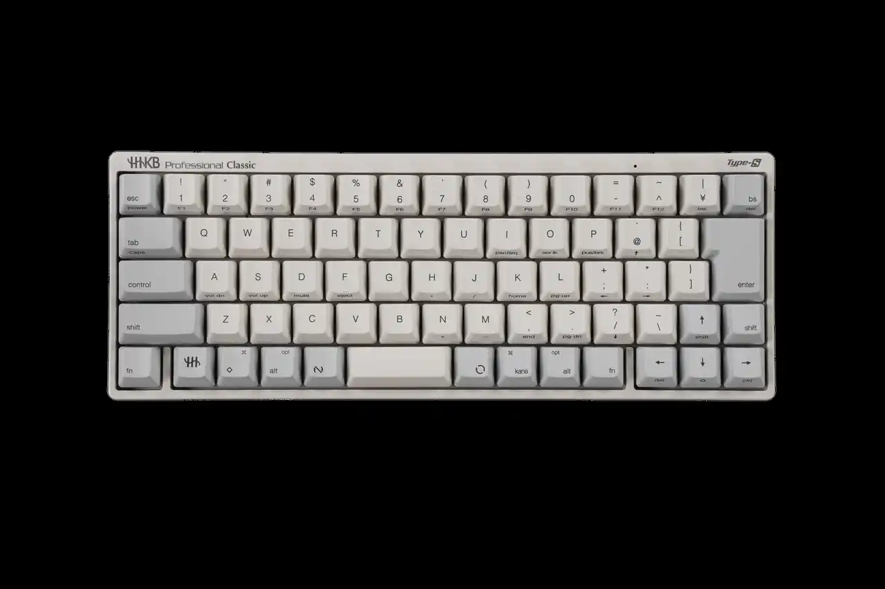 HHKB Professional Classic Type-Sは、最上位モデルと同じ「Type-S」キー構造を採用したUSB接続(Type-C)専用モデルです。初代モデルのフォルムをオマージュした電池不要のミニマルなデザインかつ、スタイリッシュな中央印字キートップを標準搭載。ユーザーの好みに合わせて使い勝手を高めることができるキーマップ変更ツールにも対応しています。 |