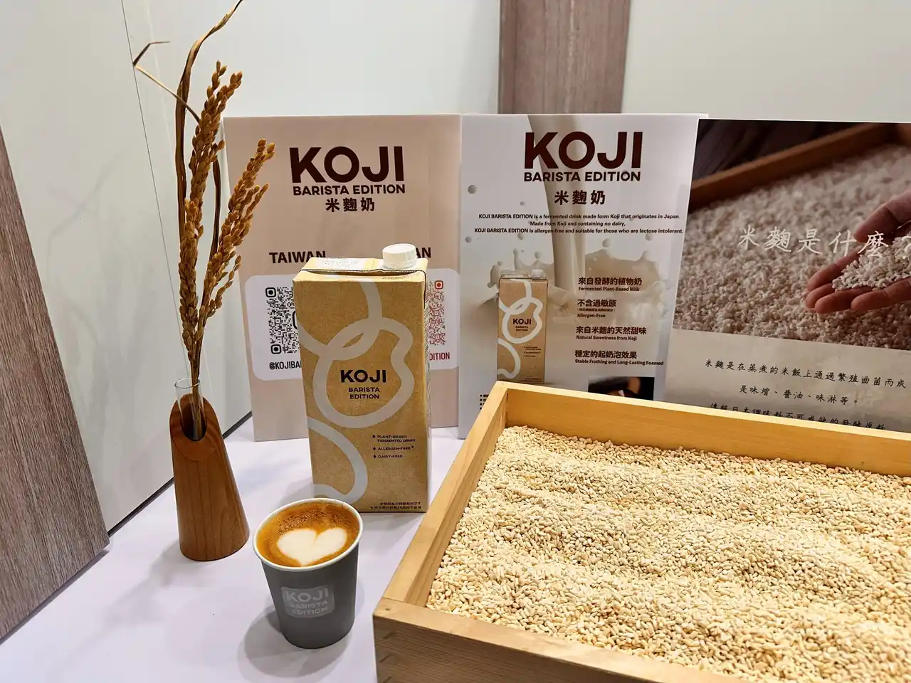 「KOJI BARISTA EDITION」は日本の伝統的な発酵技術を活かした、お米由来の自然な甘みとコクが特徴の植物性ミルクです。台湾ならではのコーヒー文化の成熟と植物性ミルクの関心の高まりから、2025年9月1日より台湾国内のカフェ業態や飲食店向けに本商品の提供を開始しました。現地のバリスタやカフェオーナーから「コーヒーの風味を損なわず、まろやかなコクが出る」「ラテのフォーミングがきめ細かい」と高く評価されたため、今回の展示会でプロに認められた味をご家庭でも楽しめる商品として一般のお客様にも販売しました。 |