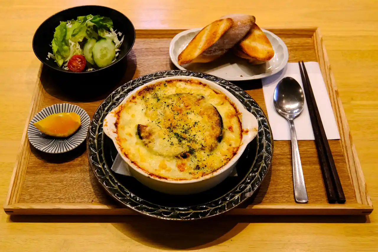 寒い日に恋しくなる温かい洋食の定番。玉野市で採れたかぼちゃを使用し、素材本来の豊かな甘みとホクホクとした食感を最大限に引き出しました。とろーり濃厚なクリームソースとチーズが絡む、心身を温まる一品です。 |