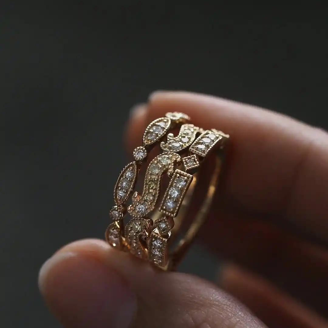 素材:アンティーク技法や伝統的な金工作 仕立:手仕事の細やかさを重視 印象:普遍的で落ち着いた佇まい |