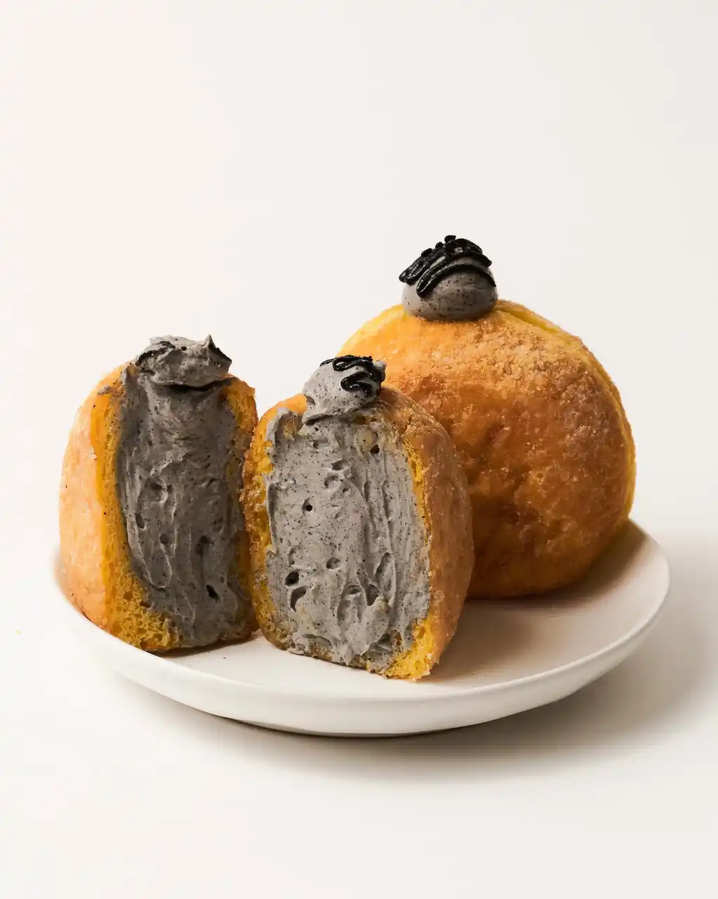 黒ごまソフトクリームをイメージした、濃厚で奥深い味わいが特徴です。クリームにはマスカルポーネや生クリームを使用することで、黒ごまの香ばしさとクリームのコクが同時にしっかりと味わえる上品でリッチな風味を実現しました。 |