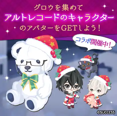イベント「コルドコレクション~Christmas Party inALTO Re:code~」は本編ストーリーを読み進めるともらえる「グロウ」を集めると、限定アバターを手に入れることができるキャンペーンです。 |