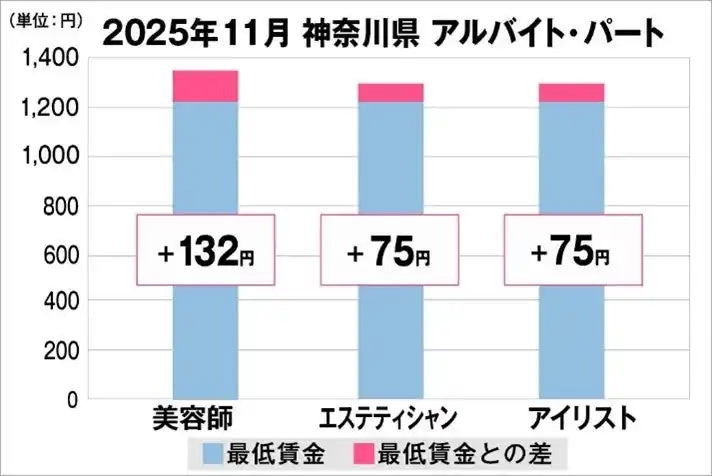 神奈川県の美容業界における採用時給料に関する調査結果(アルバイト・パート)2025年11月美プロ調べ |