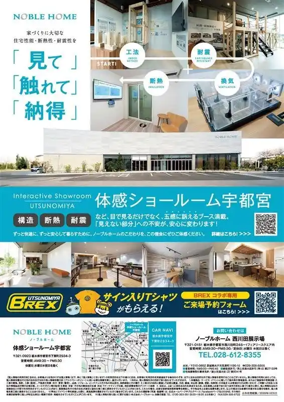 ノーブルホームは、この体感ショールーム宇都宮や、栃木エリアでの住生活事業の展開拡大のほか、宇都宮ブレックスや栃木ゴールデンブレーブスのスポンサーなど、栃木エリアの地域貢献や認知拡大の取り組みも積極的に行っています。 |