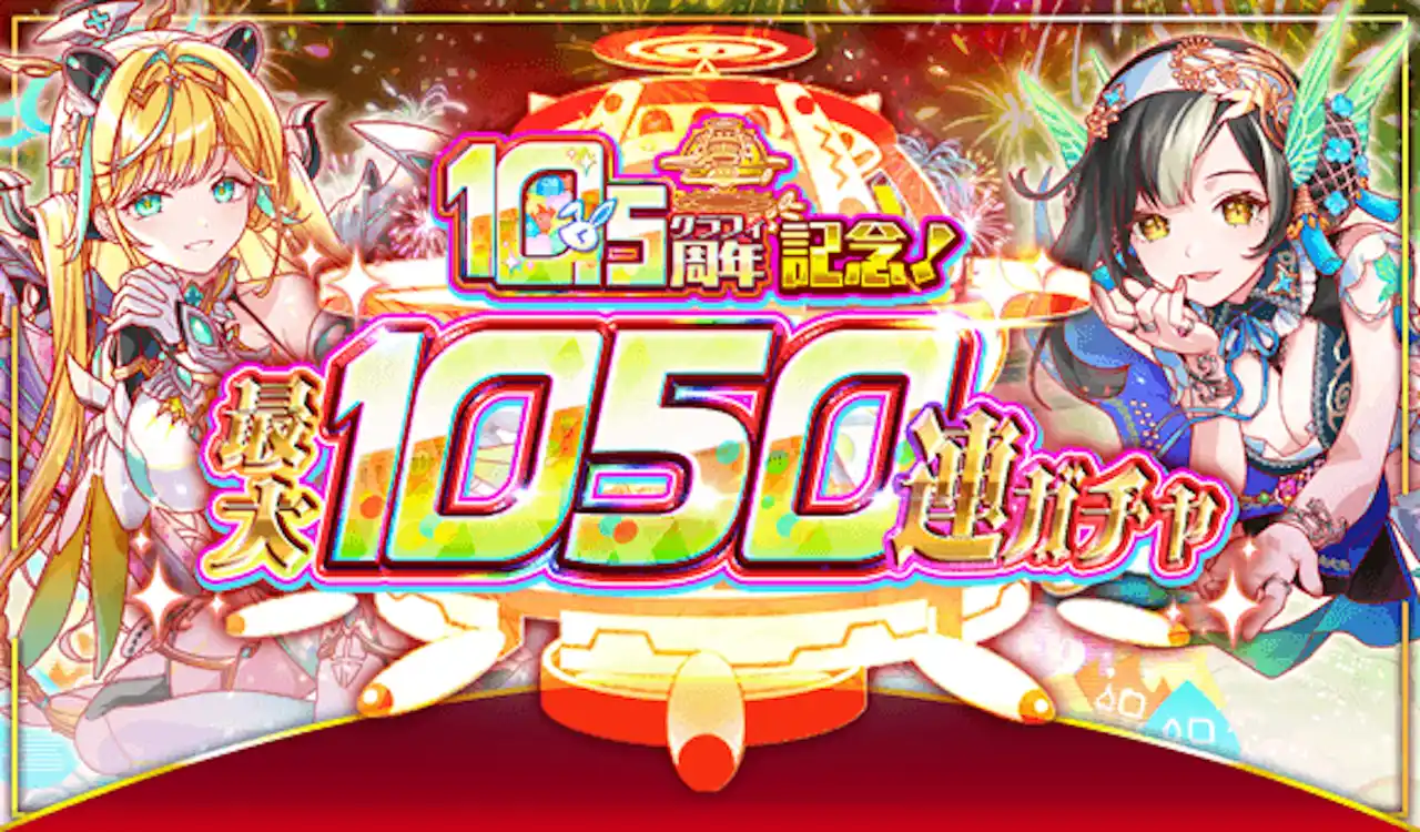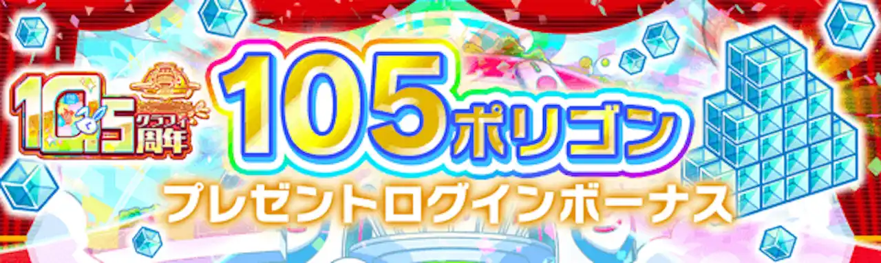10.5周年では最大1050連無料ガチャや最大ポリゴン10,500コが当たるドリームチャンスなど10.5周年のテーマ「テンアゲゴージャス」に相応しい豪華キャンペーンを実施! |