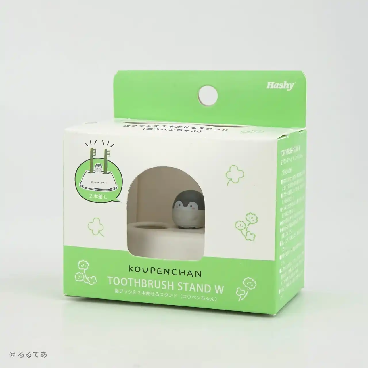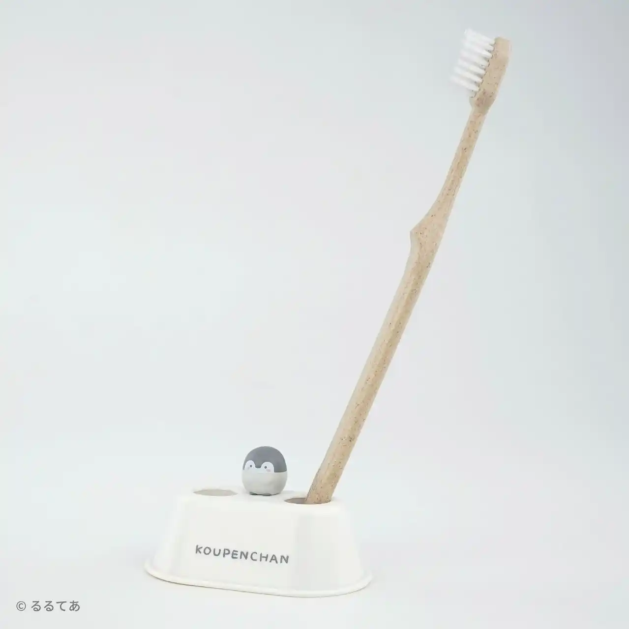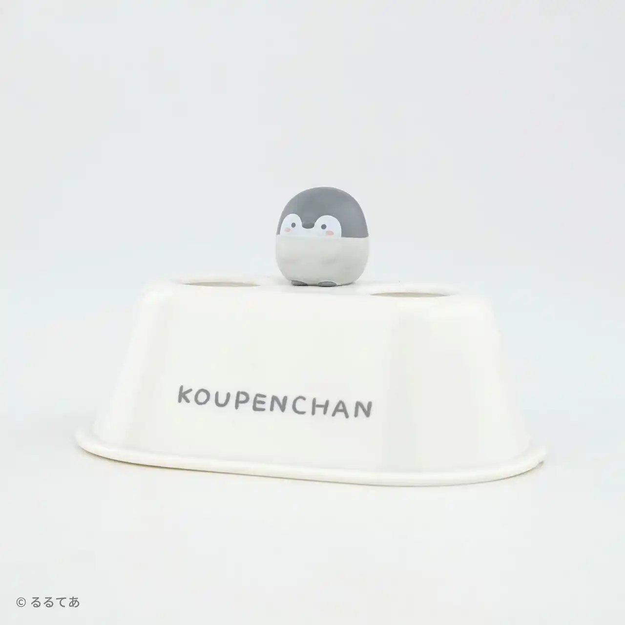 コウペンちゃんのフィギュアがちょこんと乗った、歯ブラシを2本立てられる「歯ブラシスタンドW(ダブル)」が登場! |