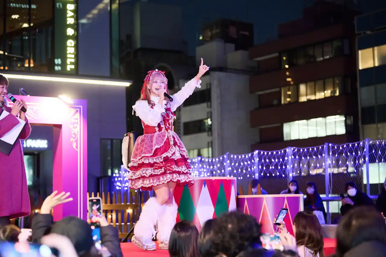 BE STAGE))にて初開催される「SHIBUYA CHRISTMAS MARKET 2025」。そのイルミネーション点灯式の第二弾が12/8(月)に開催され、大人気原宿系動画クリエイターのしなこがゲストとして登場した。 |