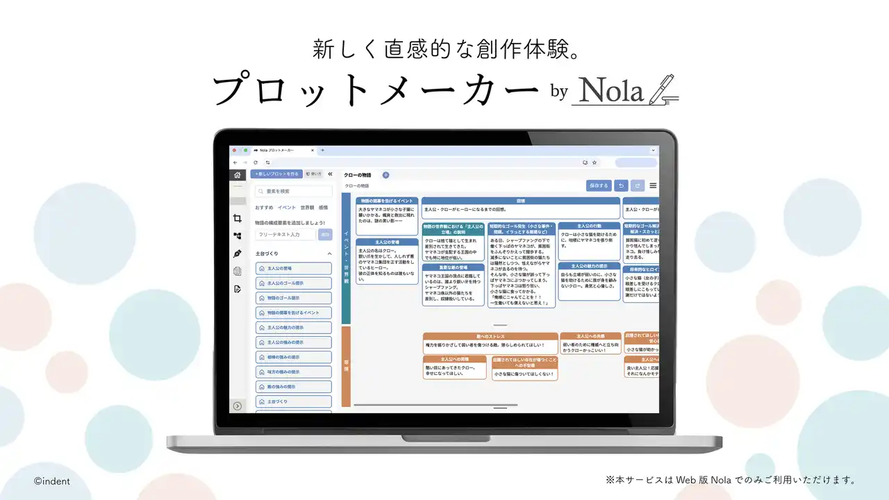 Web版「Nola」でご利用いただける新機能「プロットメーカー」のご紹介として、チラシを配布いたしました。 |