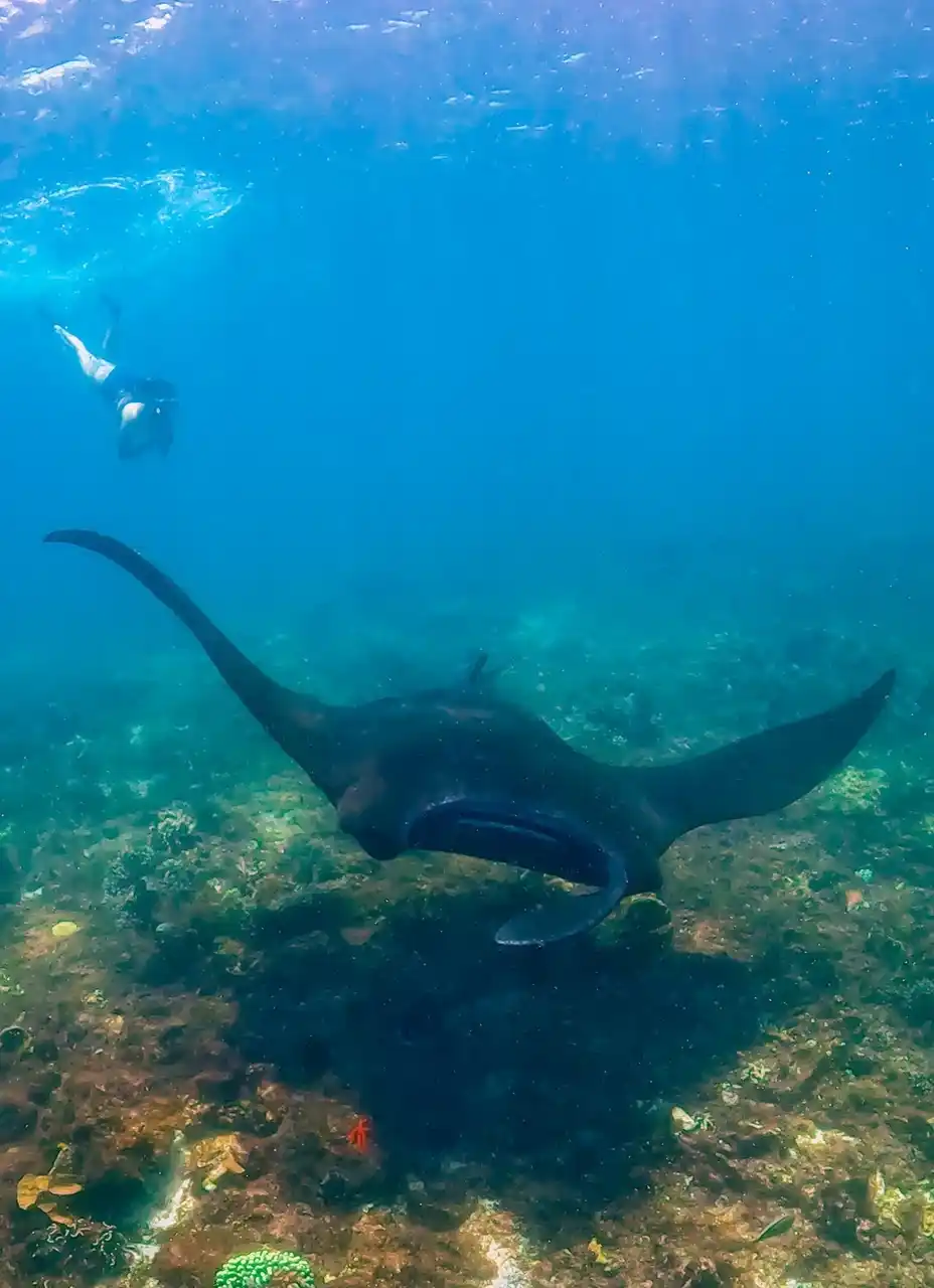 ラブアンバジョーの数ある自然の見どころの中でも、マンタポイントはインドネシアを代表するシュノーケリングおよびダイビングスポットとして知られています。世界で確認されている3種のマンタのうち、リーフマンタとジャイアントオーシャニックマンタがここに生息し、世界でもごく限られた場所でしか見ることのできない貴重な海洋生物との出会いを叶えます。インドネシア政府は2014年、この海域を「世界最大のマンタ保護区」と宣言しました。これにより沿岸にクラス人々の暮らしを支えつつ、マンタの長期的な保護と特別な自然体験を両立させる仕組みづくりが進められています。 |