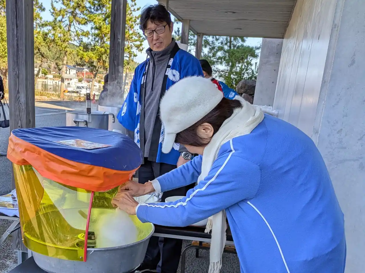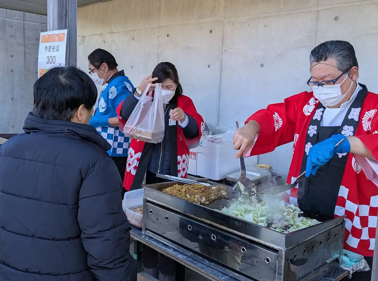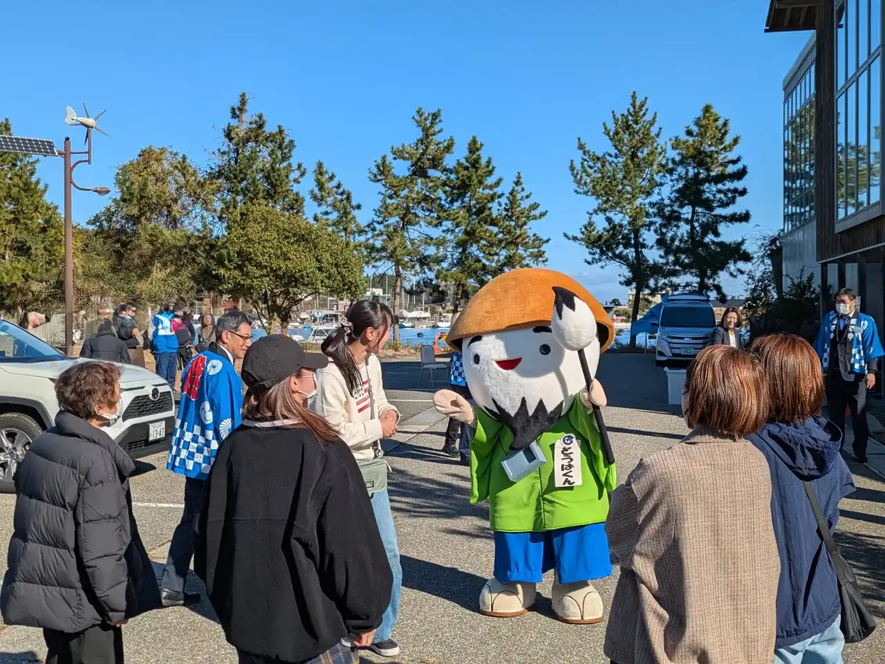 当日は11時のオープンに合わせ、先着100名様に牡蠣汁をふるまう無料サービスを実施したほか、綿菓子の無料提供やフランクフルト・焼きそばの販売、さらに七尾市のマスコットキャラクター「とうはくん」との触れ合い企画など、ささやかながらお楽しみ企画をご用意しました。 ご家族連れや地域の皆様にもご参加いただき、天候にも恵まれ、温かな雰囲気の中での再開となりました。 |