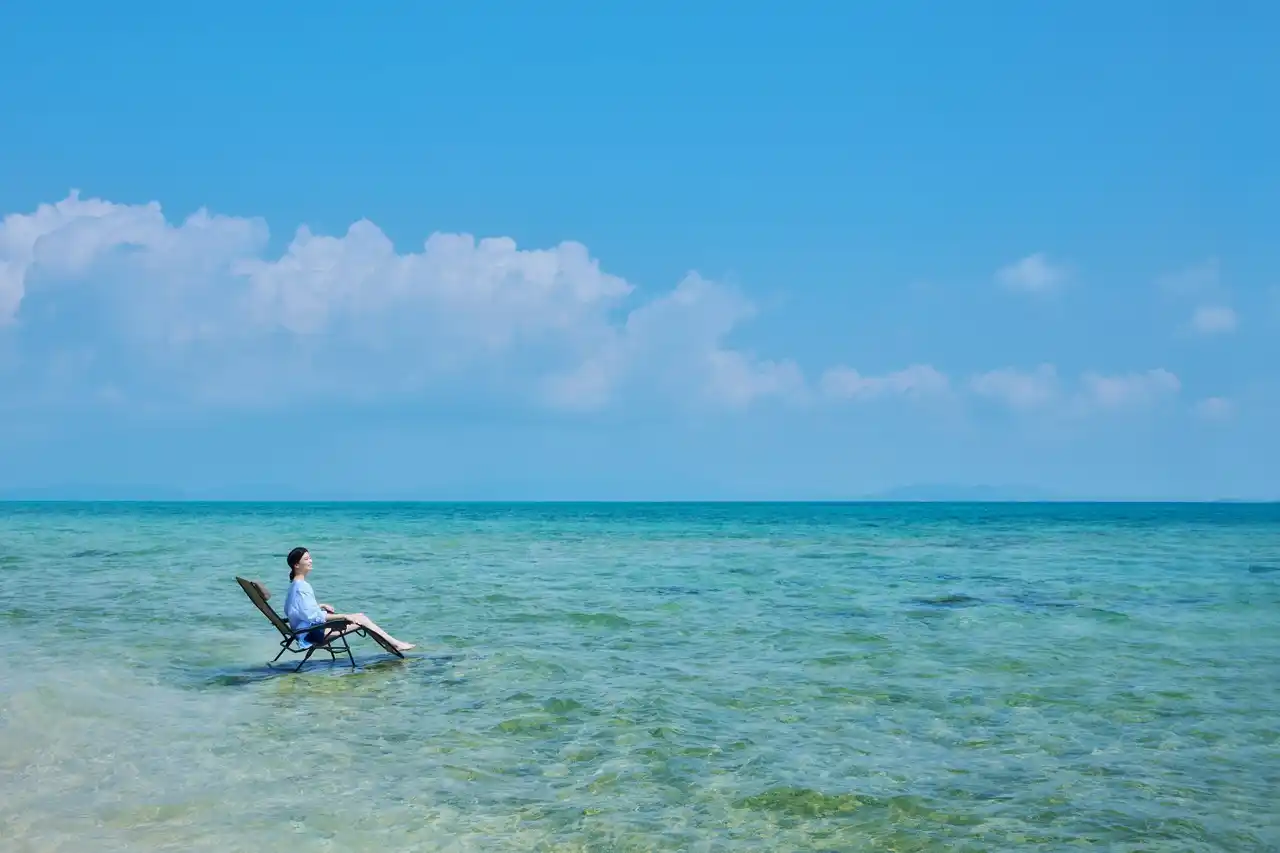 | バレルサウナで温まった後は、小浜島の自然に馴染む「琉球石灰岩」を使用した水風呂で身体を冷やします。水風呂には背もたれを配しているので、目の前には碧い海や空の絶景が広がります。冷水浴を終えたら、海上に浮かぶ外気浴チェアへ移動。まるで自然に没入するような、海風や波の音に包まれます。サウナ体験後は月桃由来のスキンケアアイテムで、肌を優しく労わることができます。 | |||||||||