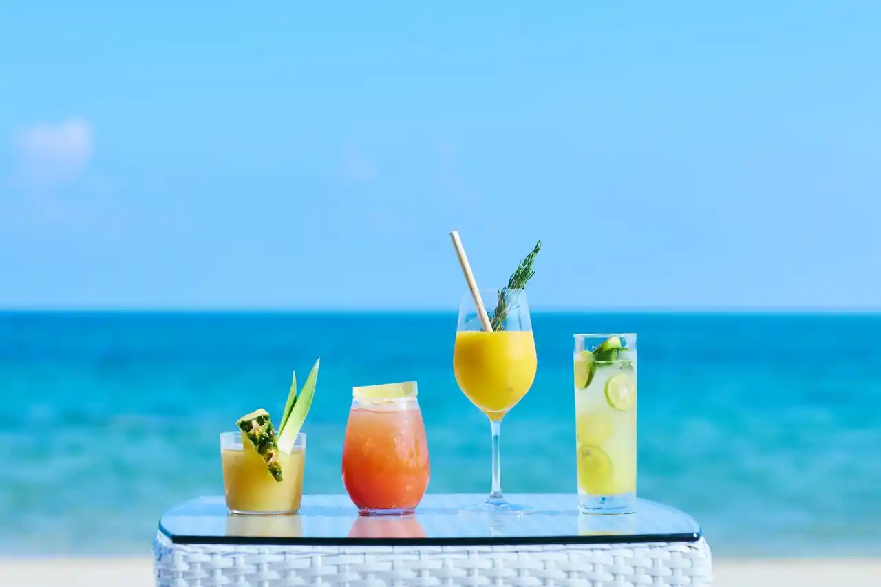 | 体験の最後に、旬の南国フルーツを活かしたサウナドリンクを提供します。春はパイナップル、夏はマンゴー、秋はグァバ、冬はシークヮーサーと、旬の味わいを活かしたノンアルコールカクテルで、失われたミネラルを爽やかに補給することができます。見た目も鮮やかで、海辺の環境に映えるドリンクです。 | |||||||||