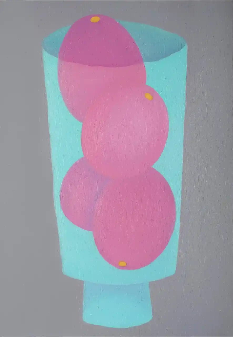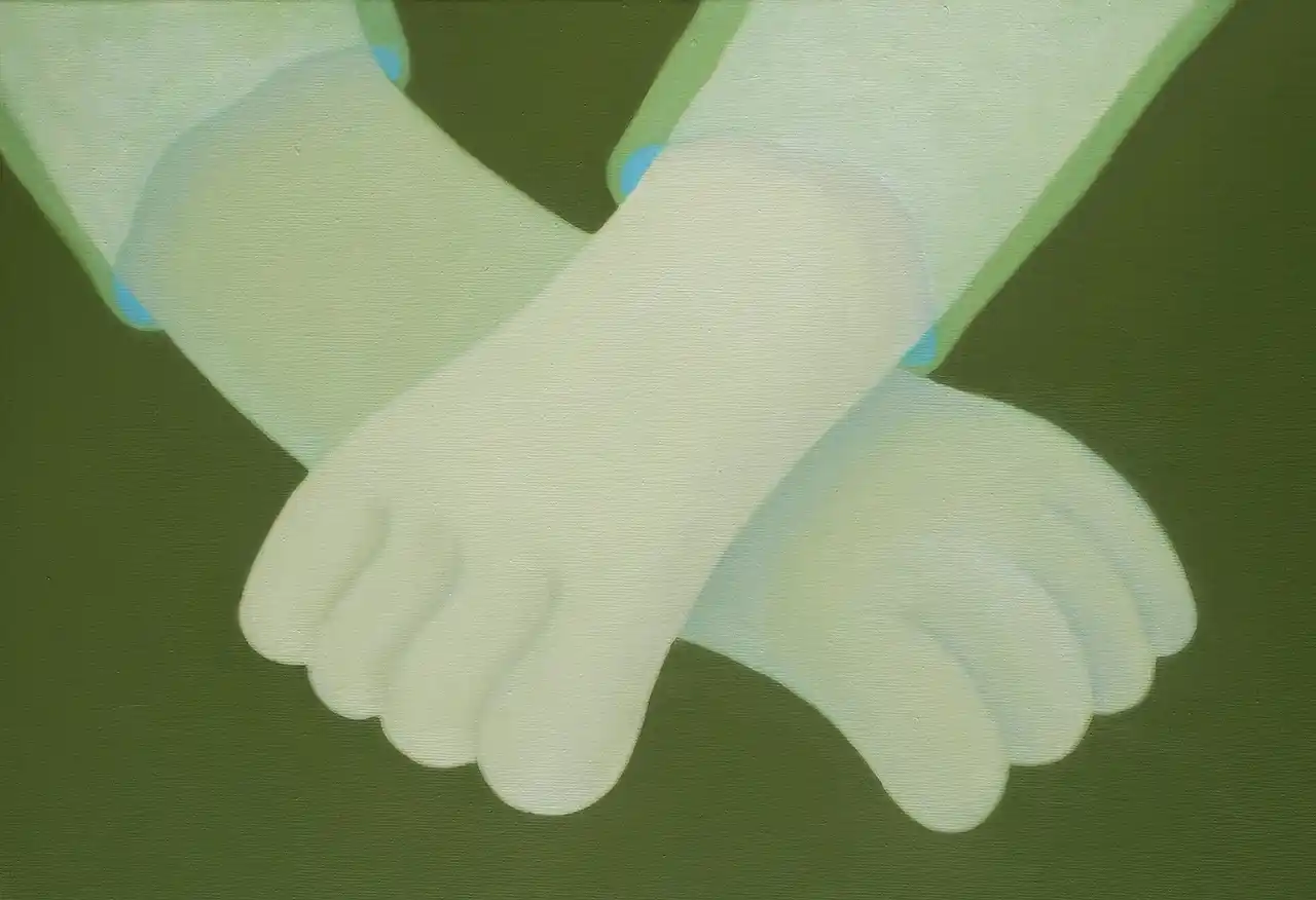 | 河合は、果物や器、手足など身近な対象をモチーフに、重なりや透過、色と形の微細な変化を探りながら、描かれた存在同士の関係性や複数の視点が同時に立ち上がる “揺らぎ” をテーマに制作を続けてきました。 | |||||||||