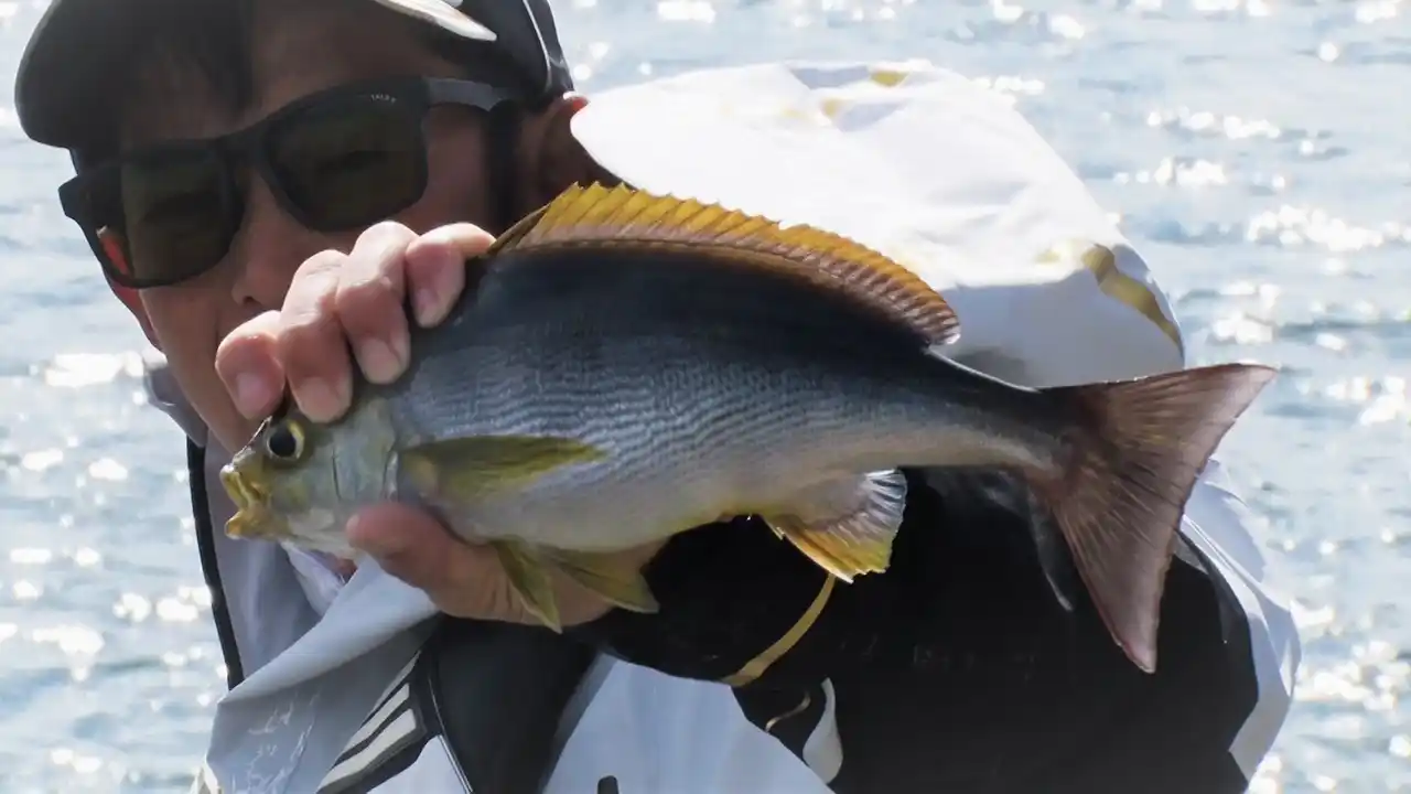 釣り上げたのはクチブトグレ、それも40cmオーバーのグッドサイズ。 |