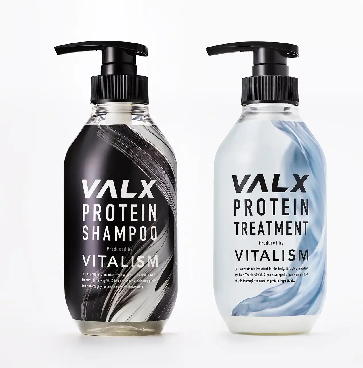 プロテインの力を存分に活かすために設計された「VALX プロテインシャンプー」と「VALX プロテイントリートメント」。 |