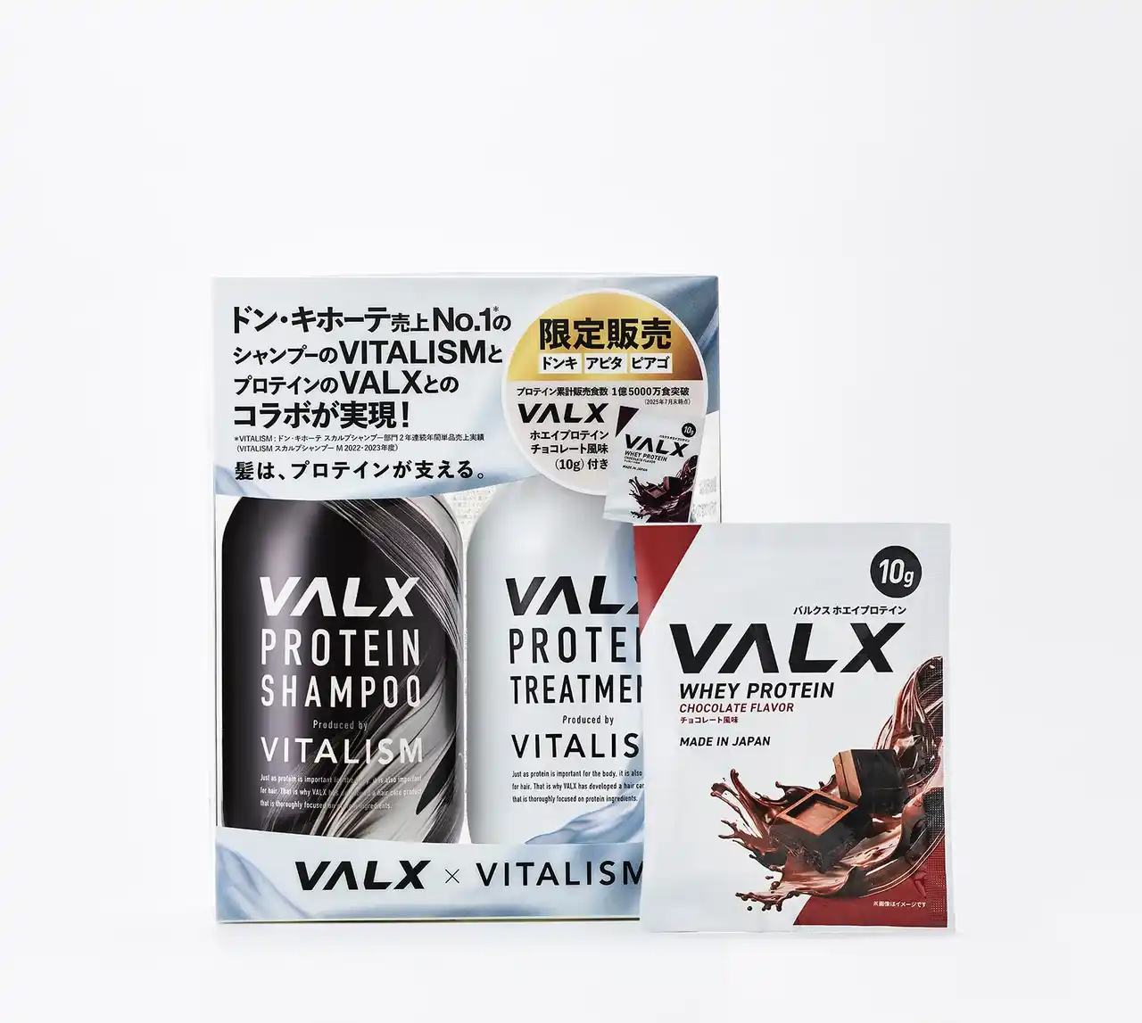 「VITALISM(バイタリズム)」 を展開する株式会社ヘアジニアス・ラボラトリーズ(本社:東京都渋谷区、代表取締役:津田知明)は、このたび、 日本を代表するプロテインブランド「VALX(バルクス)」を展開するVALX株式会社(本社:東京都渋谷区、代表取締役 只石昌幸)とのコラボレーションを実現。新たに、プロテインの力をヘアケアに活かした「VALX プロテインシャンプー」「VALX プロテイントリートメント」をリリース。2025年12月10日(水)より、販売を開始します。 |