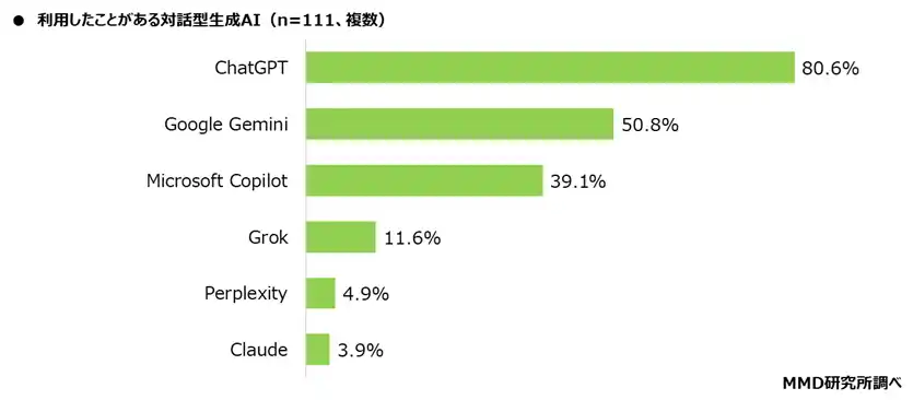 ■ 利用したことがある生成AIは「ChatGPT」「Google Gemini」「Microsoft Copilot」 |