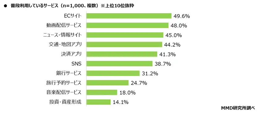 ■ 普段利用しているサービスは「ECサイト」「動画配信サービス」「ニュース・情報サイト」 |