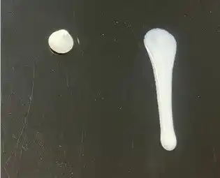 吸水ポリマーは水の量に応じて膨潤していくため、処方によっては流動性がなくなり固くなっていく傾向があります。吸水ポリマーを配合したクリーム状の日焼け止めは、硬いゲル状の特性を有する乳化技術を用いることで水の動きを抑えて安定化させる技術を採用しています。 |
