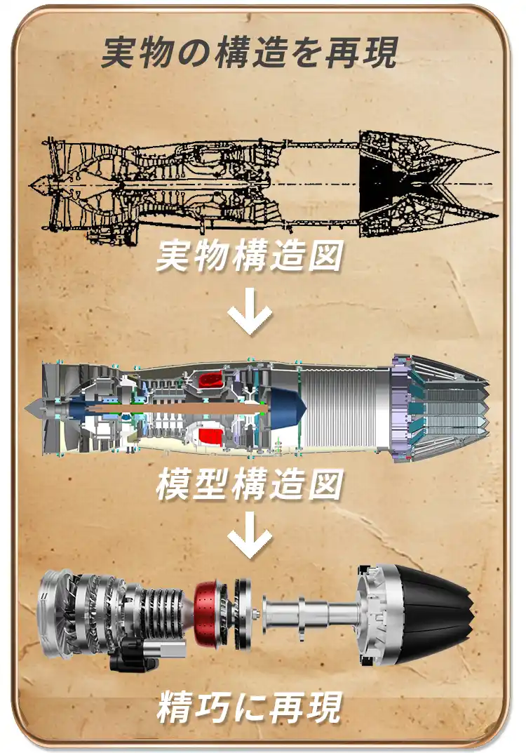 今回のエンジン模型は実在する戦闘機のエンジンをモチーフとしています。 |