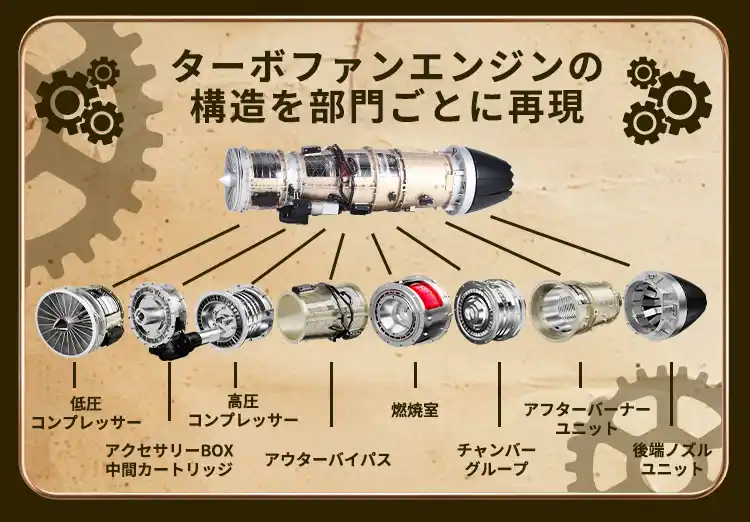 構造を理解し、普段目にすることはない、ターボファンエンジン内部を組み立てるというのは大変貴重な模型です。 |