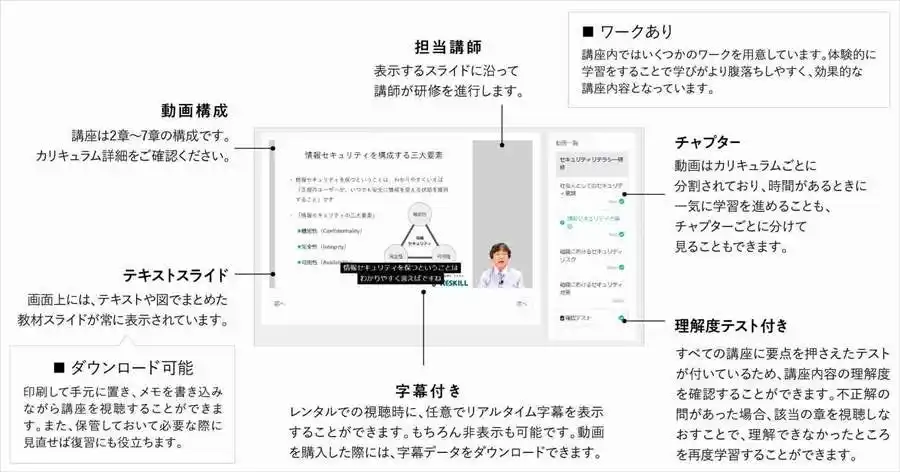 リスキルのeラーニング動画講座の仕様 |