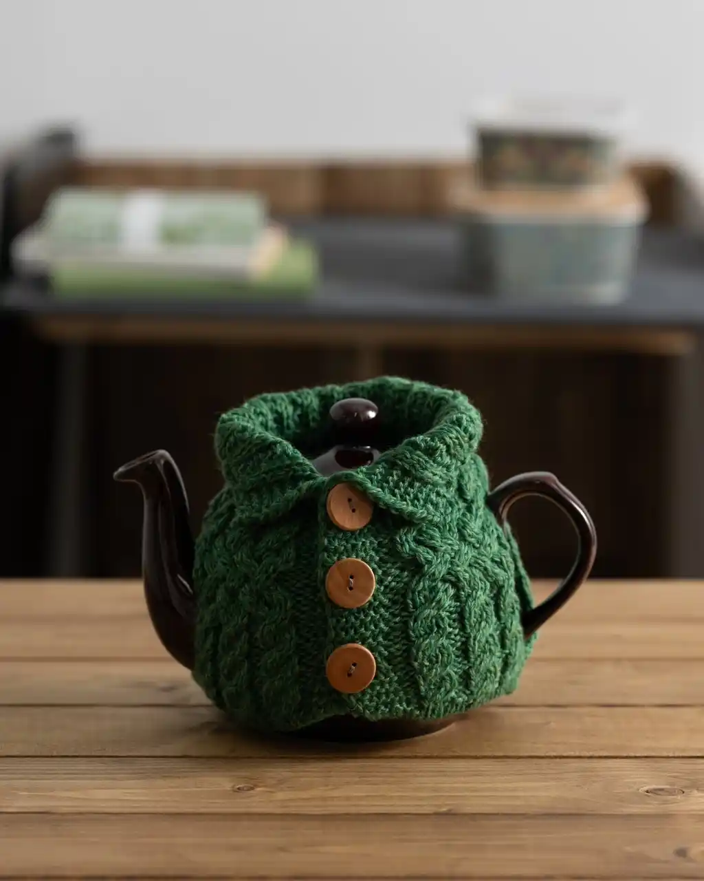 | まるでポットがカーディガンを着ているような愛らしいデザイン。 | |||