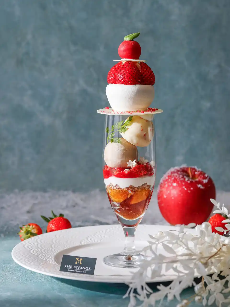 ザ ストリングス 表参道(所在地:東京都港区北青山3-6-8、総支配人:宮田宏之)では、1階「Cafe & Dining ZelkovA(カフェ&ダイニング ゼルコヴァ)」にて、旬のりんごといちごを主役に、白雪に包まれた冬の森をイメージしたフェアリーな『りんご&いちごの白雪パフェ』を、2025年12月29日(月)~2026年3月31日(火)の期間限定で提供いたします。