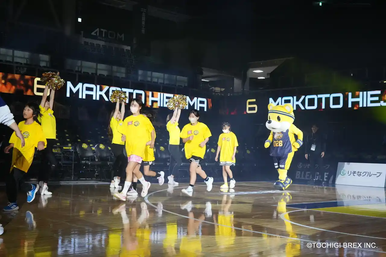 | また、#0 田臥選手、#028 ブレッキー、BREXYがサプライズゲストとして写真撮影に参加し、田臥選手から参加の児童に「僕らがいつも使っているコートで思い切りバスケを楽しんでください」とメッセージが送られました。 | |||||||||