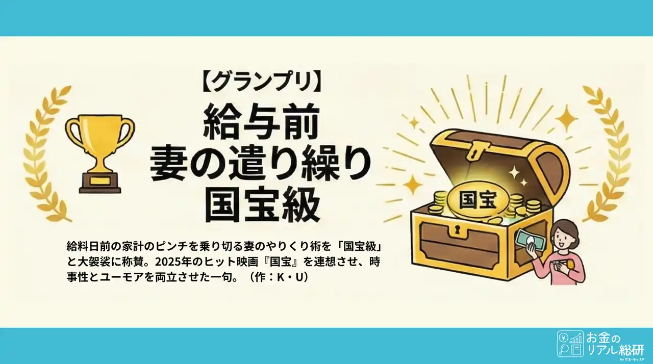 | お金の相談プラットフォーム「マネーキャリア」を運営する株式会社Wizleap(東京都渋谷区、代表取締役 谷川昌平)は、同社が運営するお金のリアル総研が実施しておりました「お金のリアル川柳~今年のお金のモヤモヤ教えてください~」のグランプリが決定したことをお知らせいたします。 | |||