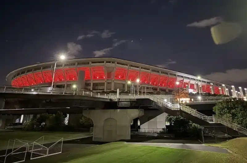横浜キヤノンイーグルスの開幕戦に合わせ、イーグルスと日産スタジアムの連携によるスタジアムライトアップ(イーグルスカラーの赤)も実施されます。このライトアップは神奈川ダービー開催日まで実施されています。 |