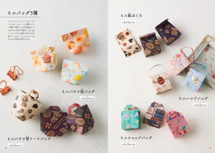 本書には、ミニバッグやミニティッシュボックス、ミニノートなど、SNSでも大人気のミニチュア的アイテムをはじめ、かわいくて実用性のある作品が満載。子どもはもちろん、大人のハートも一瞬で掴むような作品で溢れています。 |