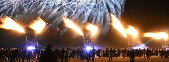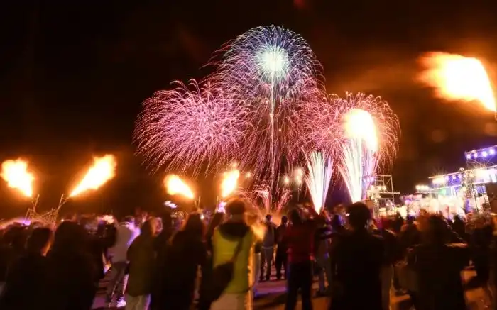 地元出身ミュージシャンのライブと、炎・照明・花火が融合した光のショーで盛り上がり、年明け前には会場全員で一斉に新年へ向けたカウントダウンに突入します。 そして、年が明けると同時に、2026年の幕開けを祝福する花火が打ち上がる、感動的な年越しイベントです。 |