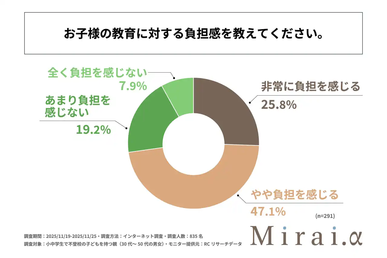 不登校の子どものために学校外の教育支援サービスを利用している親の7割以上が、子どもの教育に程度の差こそあれ負担を感じている |