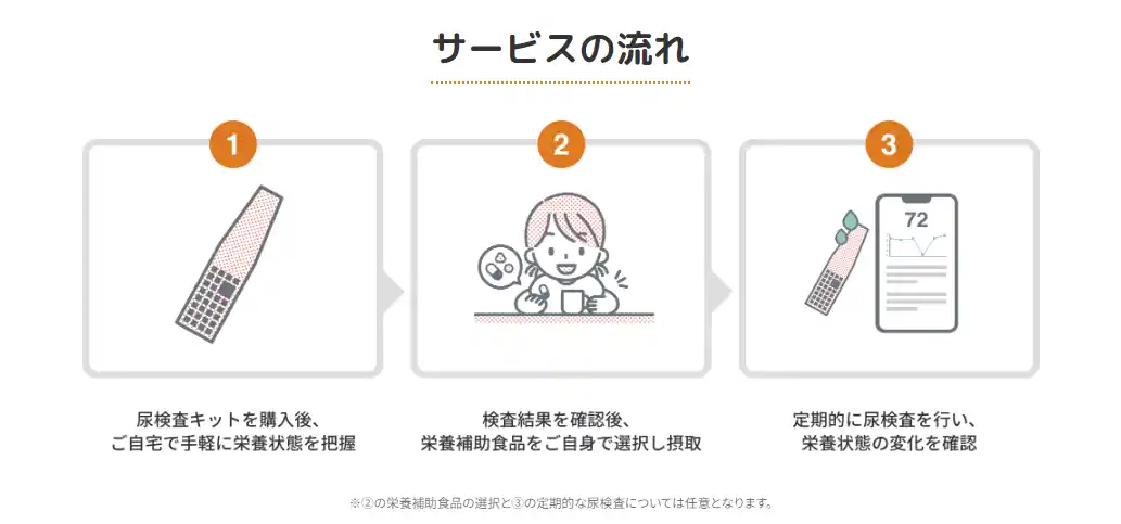 | 当社は昨年、お子さまの栄養状態を尿検査で把握し、栄養補助食品を摂取いただく実証を行いました。今回、その実証結果や参加者へのアンケート結果等を踏まえ、実際に商品を販売し、本格サービス化に向けた受容性やニーズを検証する実証に取り組みます。 | |||