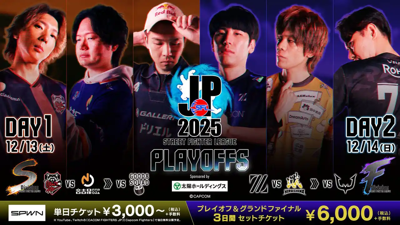 「ストリートファイターリーグ: Pro-JP 2025 プレイオフ」は12月13日(土)~14日(日)に渡り開催! Live視聴チケット発売中! |