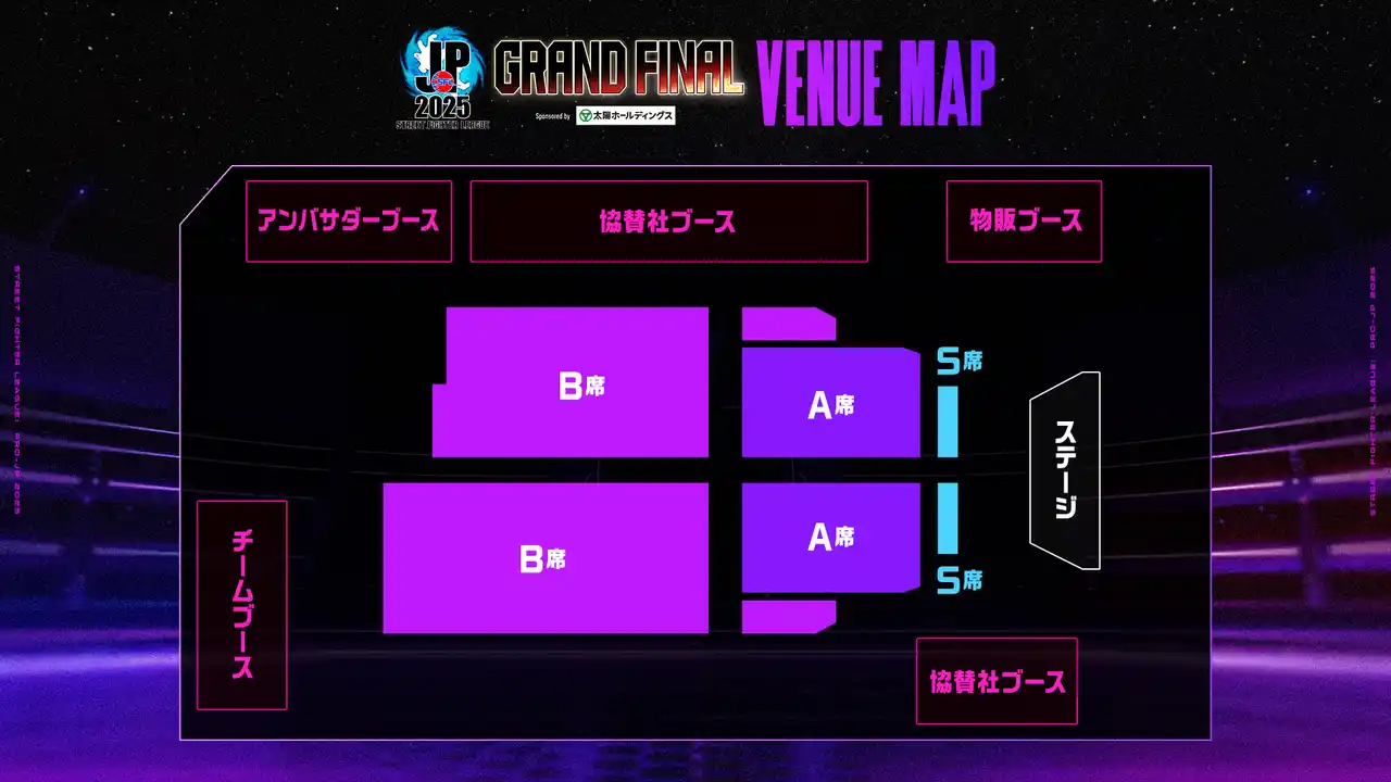 「ストリートファイターリーグ: Pro-JP 2025 プレイオフ」も開催が間近となりましたが、「プレイオフ」勝利チームが進出する決勝大会「ストリートファイターリーグ: Pro-JP 2025 グランドファイナル」の会場マップおよびブース出展企業・チームの情報を一部公開いたします。 |