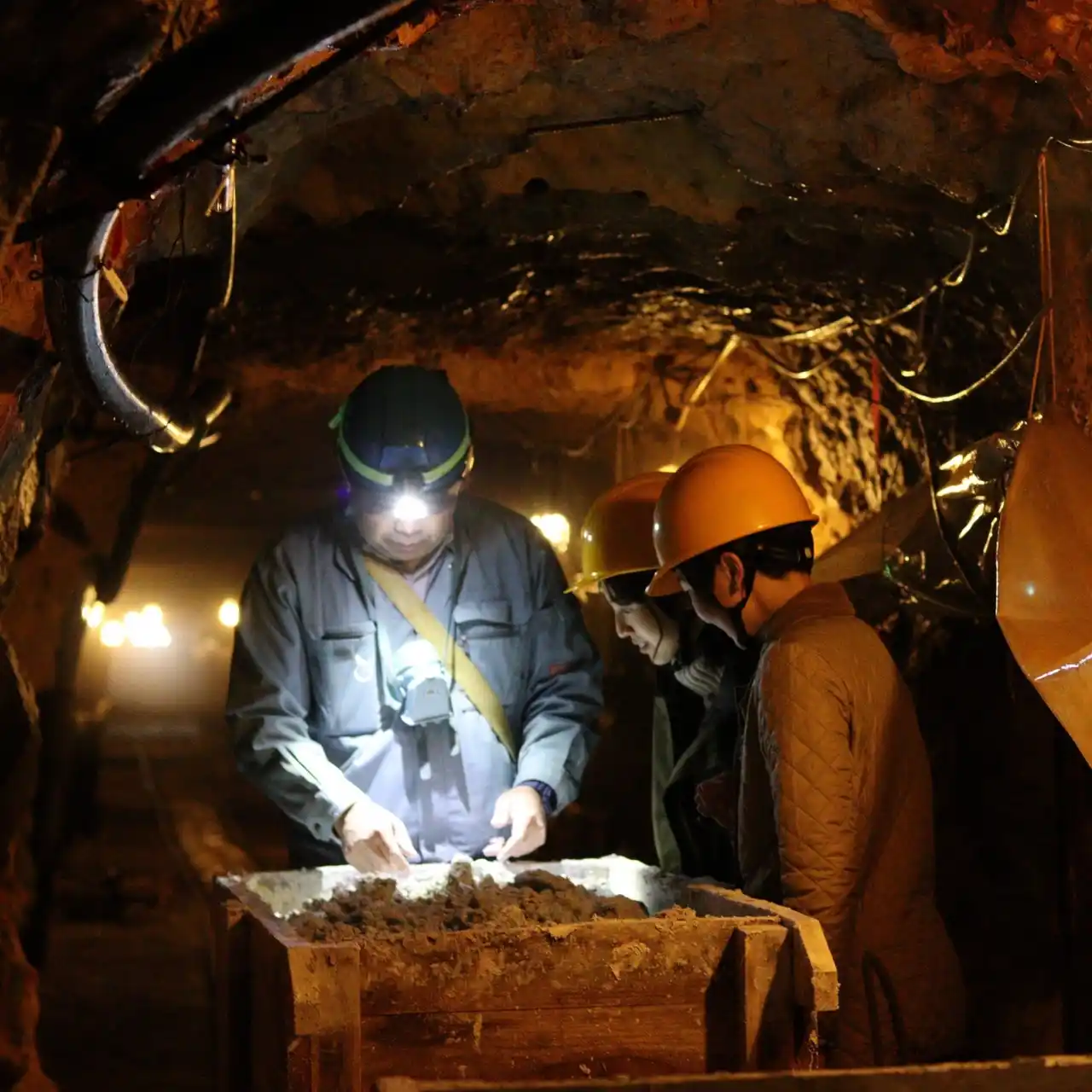 | さらに、毎月第2土曜日には、セリサイトの採掘現場を実際に訪ねる「セリサイト採掘鉱山探検」を実施しています。80年近く続く手掘りの鉱山で、現在も稼働している手掘り鉱山を探検できるのは日本でここだけと言われています。採掘方法の解説や採掘中の鉱物を間近で見る体験は、東栄町ならではの貴重なプログラムとして注目を集めています。 | |||||||||
