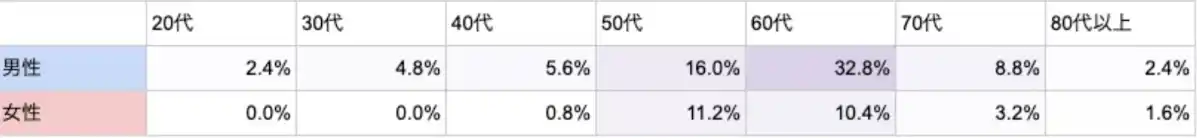 プロモーションバナーのクリック率を分析したところ、60代男性が最も関心を示し、次いで50代男性が続く結果となりました。 |