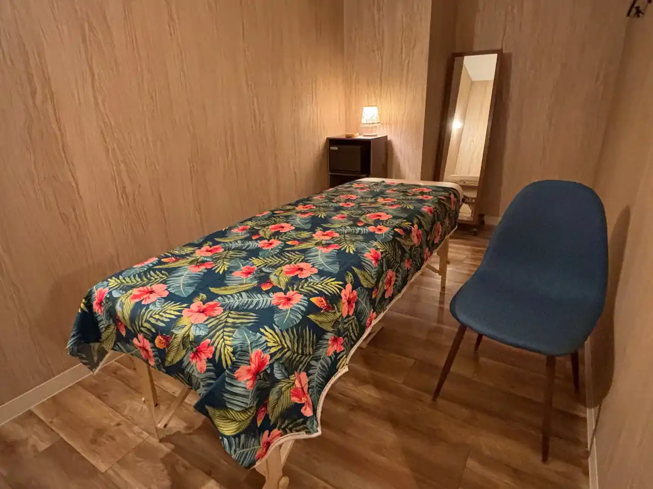 セラピストが笑顔でお出迎え お部屋へご案内をし、本日のコースをご確認させていただきます。 その後、パジャマと紙ショーツのお着替えをお願いいたします。 |