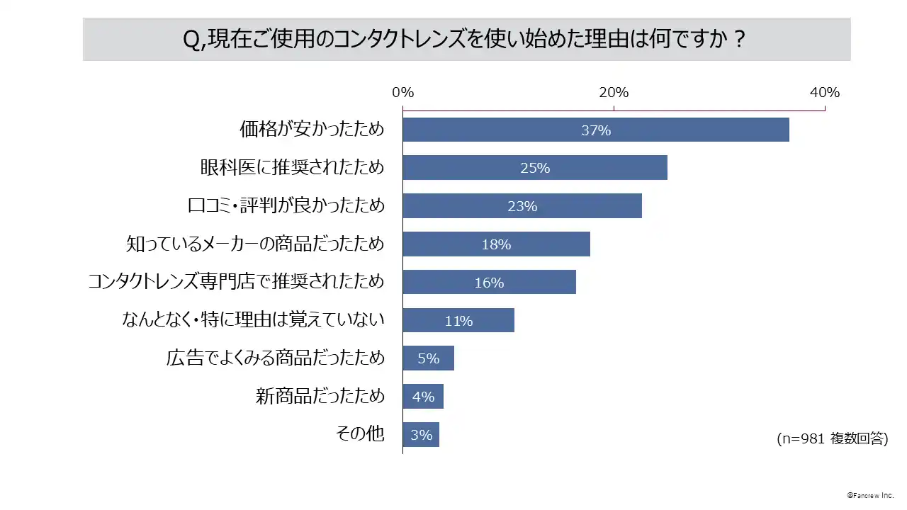 3.現在使用中のコンタクトレンズを使い始めた理由は「価格が安かったため」37% |