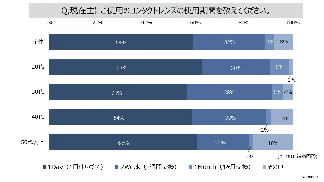 2. 主に使用しているコンタクトレンズの使用期間は「1DAY(1日使い捨て)」64% |