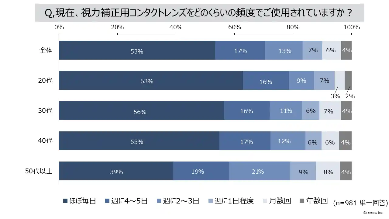 1.視力補正用コンタクトレンズを使っている方の使用頻度は「ほぼ毎日」53% |