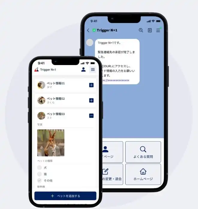 このたび当社は、ペットの飼い主を主な対象とした、LINEを用いた見守り・保護依頼アプリケーション『Trigger(トリガー) N+1』のサービスを開始いたしました。 |